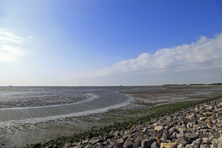 Die Südseite der Insel wird von einem Deich umgeben, von dem man einen herrlichen Ausblick auf das Wattenmeer hat.