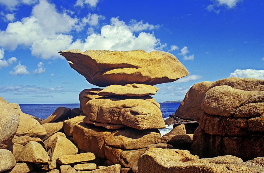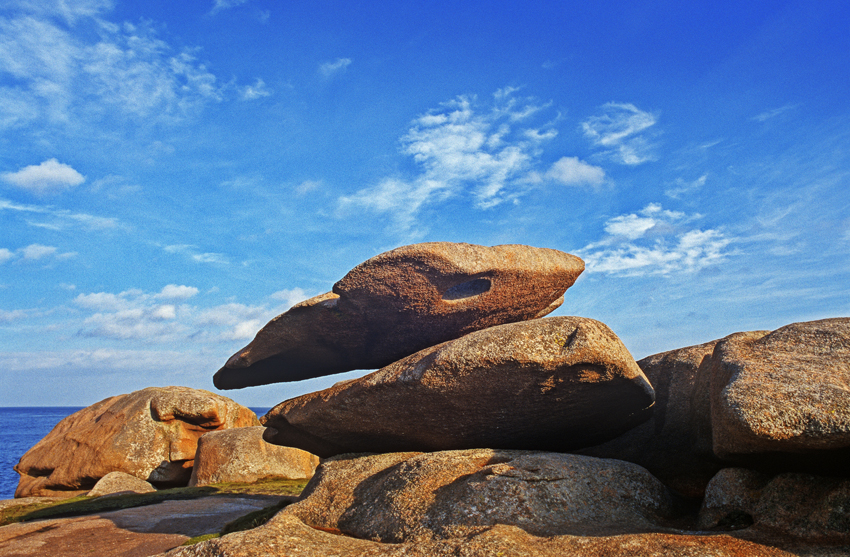 die bretonische Steilküste, die sogenannte „Corniche bretonne“ und an die „Côte de Granit Rose“ (die rosa Granitküste) zwischen Trégastel und Ploumanach.