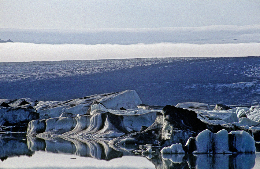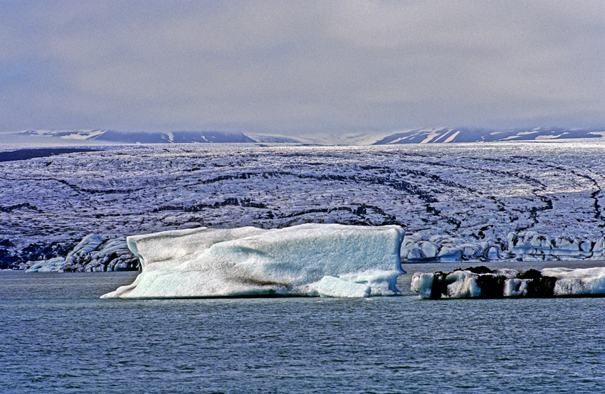Hier kalbt der Breiðamerkurjökull, eine große Gletscherzunge des Vatnajökulls, Eisberge in die Lagune.