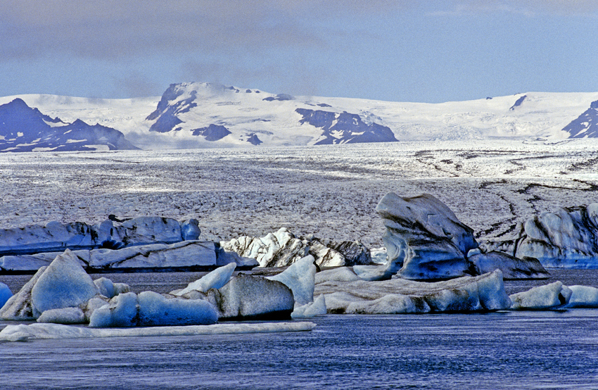 Die Gletscherlagune Jökulsárlón ist einer der besonderen faszinierenden Naturschauplätze Islands. Die Vielzahl an blauen, türkisen und von schwarzer Lava