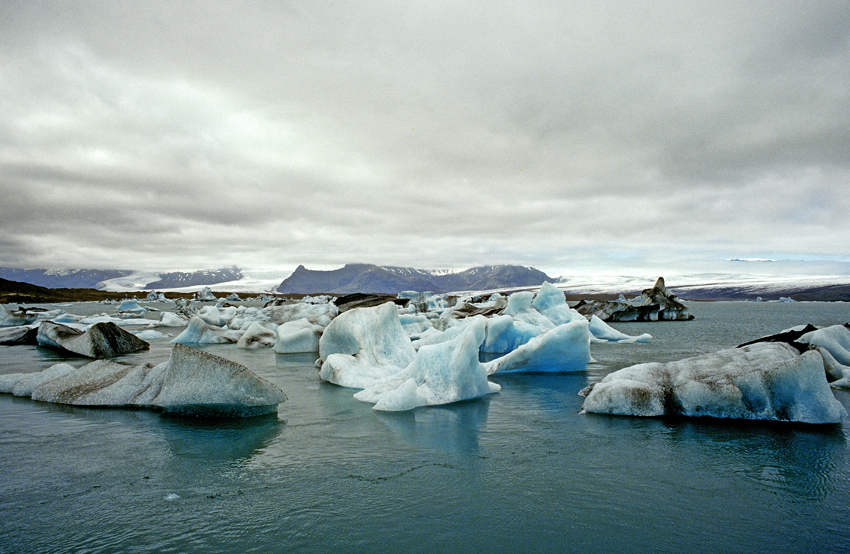 durchzogen leuchtende Eisberge macht diesen Gletschersee zu etwas ganz Besonderes.