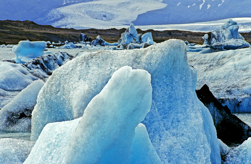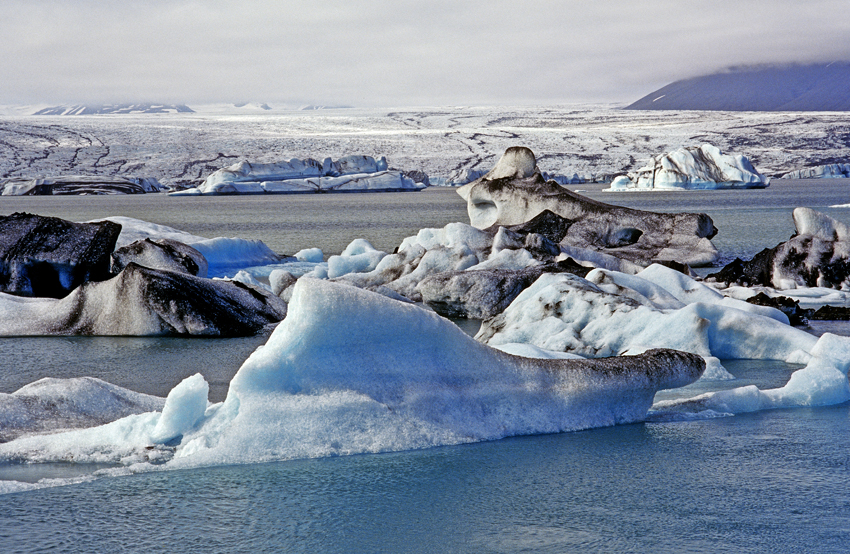 Die Gletscherlagune Jökulsárlón ist einer der besonderen faszinierenden Naturschauplätze Islands. Die Vielzahl an blauen, türkisen und von schwarzer Lava