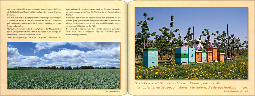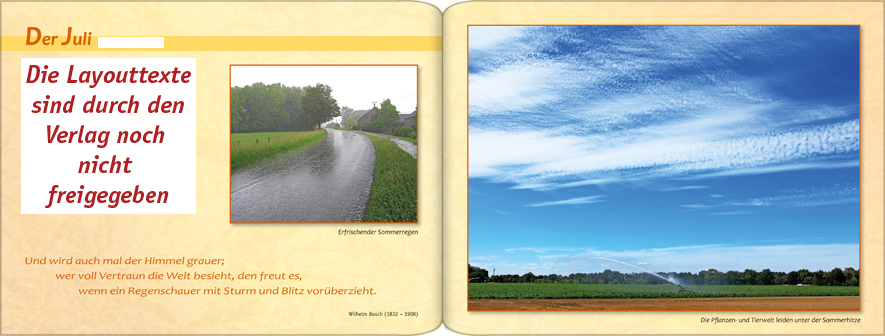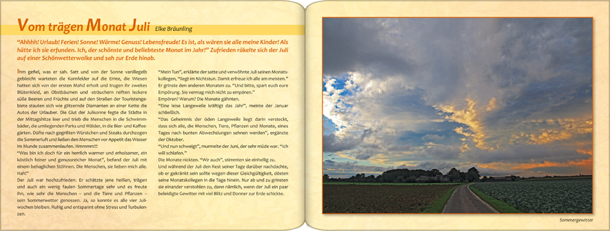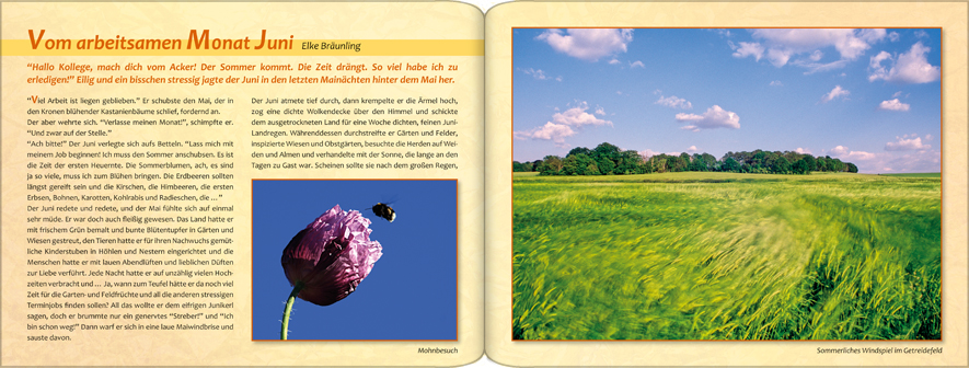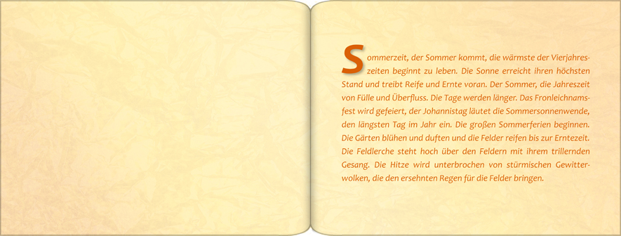 Die großen Sommerferien beginnen. Die Gärten blühen und duften und die Felder reifen bis zur Erntezeit.